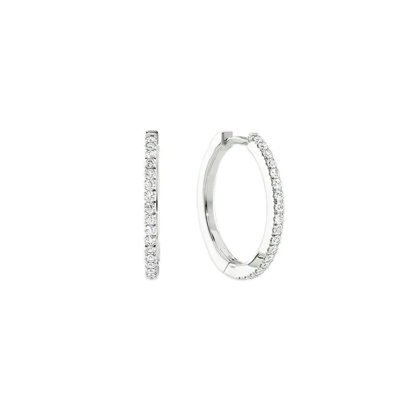 Shimmering diamonds gives these classic hoops a glamorous twist. The delicate pave setting adds a touch of luxury and sophistication, while the hoop design gives them a timeless appeal that will never go out of style. They’re versatile and easy to wear, and their delicate size makes them ideal for layering with other earrings.