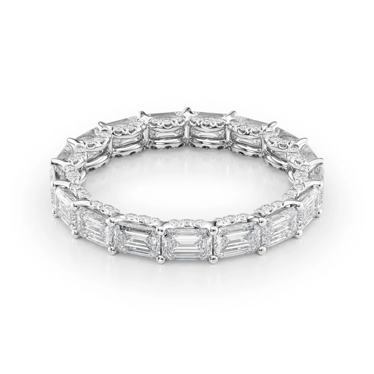 3.8ct East West Emerald U Pave Prong Eternity