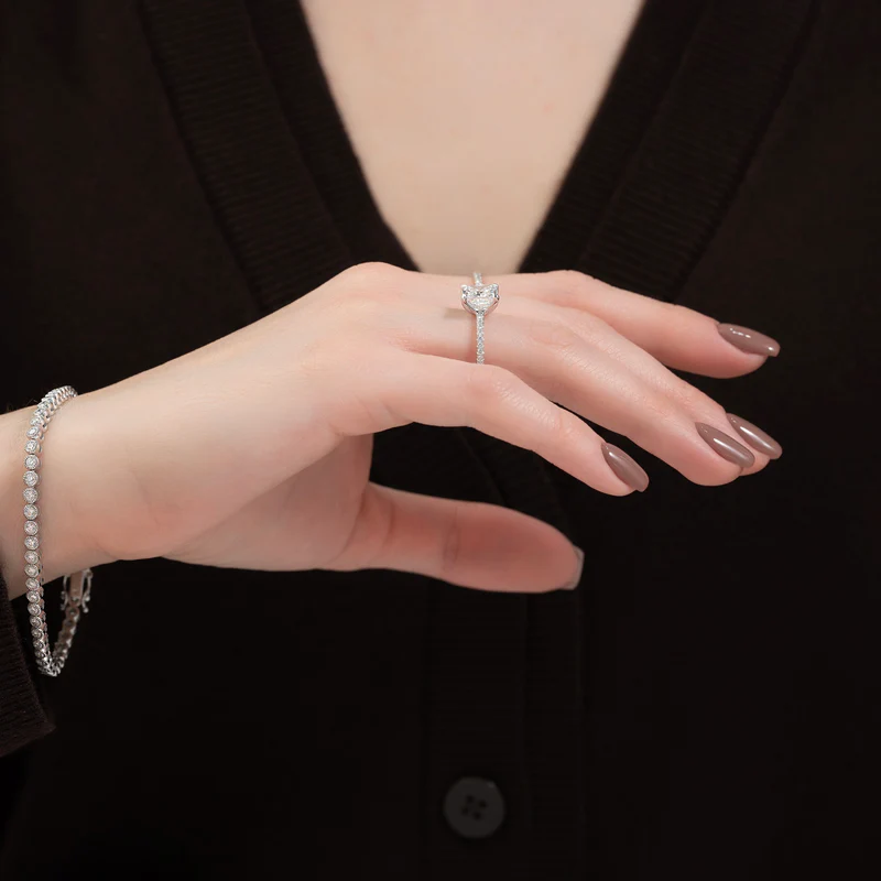 I'M OBSESSED WITH MY RING! It's beautiful and sparkling and the stone is solid and i loved all the upgrades i did! I will definitely be purchasing more from Monclaire!!