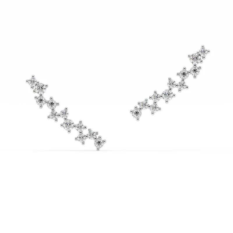 Introducing the Scattered Climbers, where artistry and innovation unite to create a masterpiece of celestial beauty. Inspired by the night sky and the splendor of the stars, these earrings are a dazzling addition to any fine jewelry collection. Each earring features eleven carefully selected round-cut lab diamonds, arranged in an exquisite celestial pattern that sparkles like stars. The pattern climbs gracefully up the ear, mimicking the trail of a shooting star, and glistens with a radiance that is truly awe-inspiring.