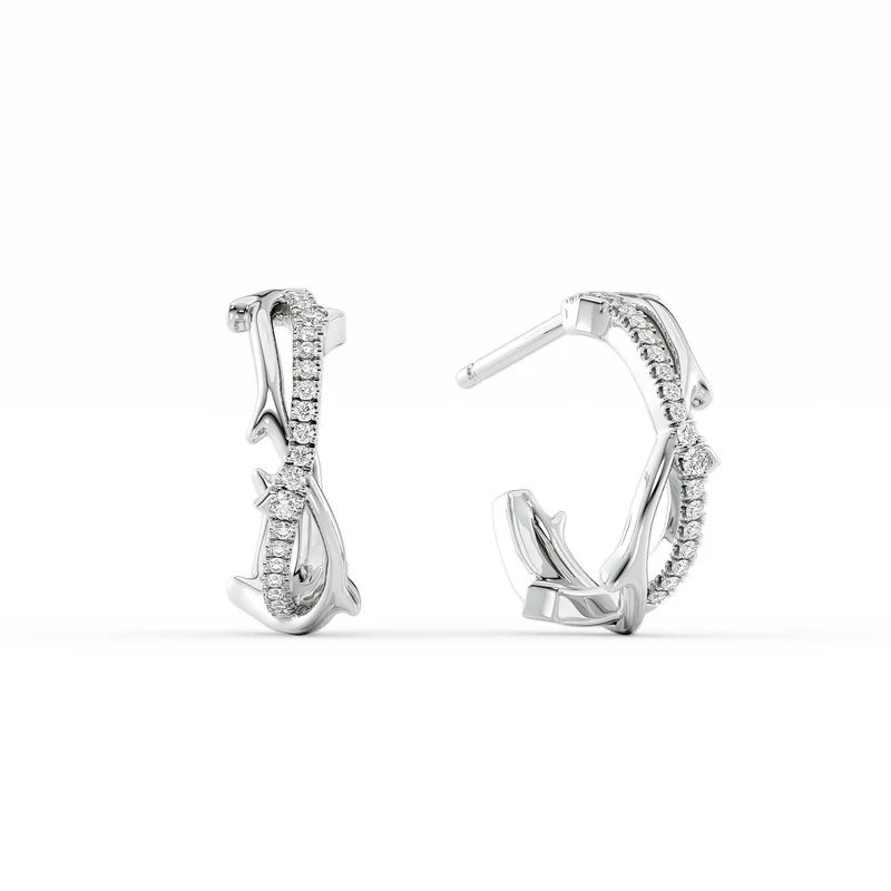 The Small Twig Pave Hoop earrings are the perfect blend of nature-inspired design and dazzling elegance. These exquisite earrings feature a twisted twig design encrusted with shimmering pave diamonds, creating an enchanting effect that’s sure to turn heads. The delicate hoop design makes them perfect for everyday wear or special occasions. With a touch of nature and the timeless beauty of diamonds, these earrings are a must-have addition to any jewelry collection.