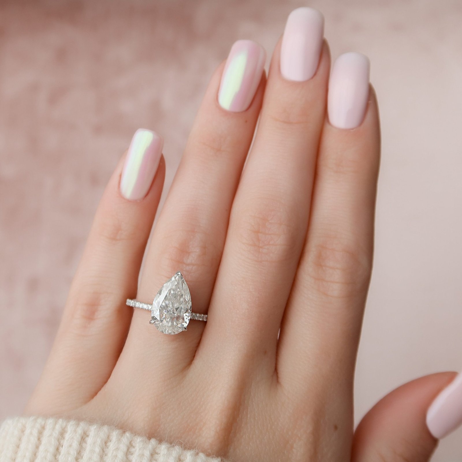 The Pave Alex Set With A 1.0 Carat Pear 14K White Gold Lab Diamond
