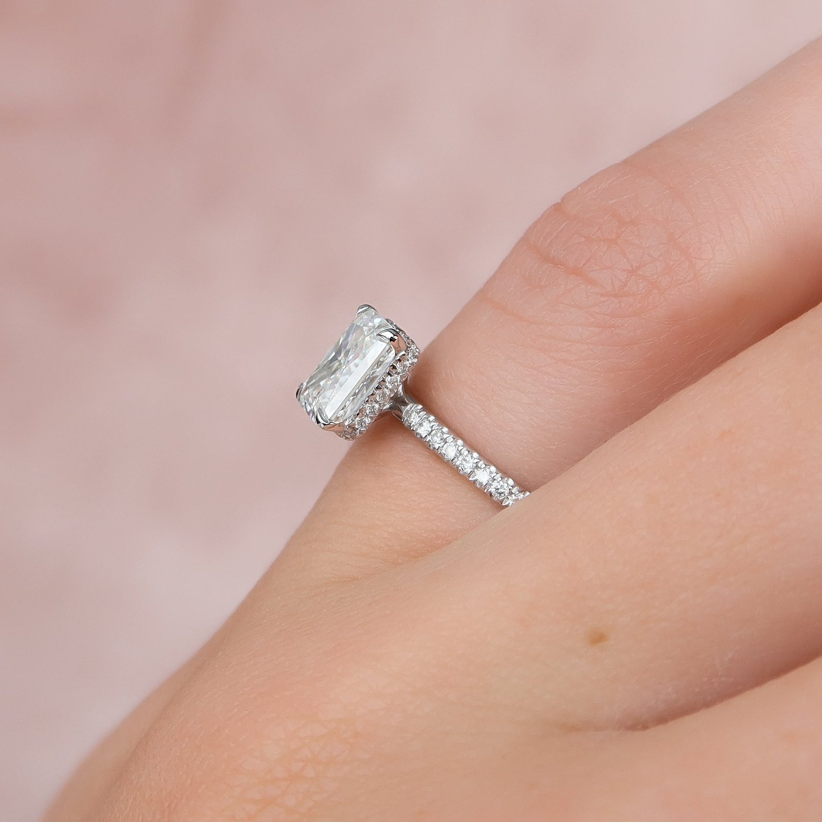 The Pave Alex Set With A 1.0 Carat Radiant 14K White Gold Lab Diamond