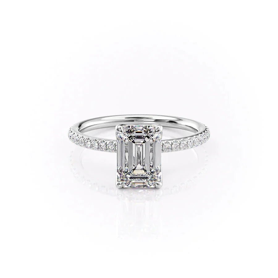 The Pave Alison Set With A 1.0 Carat Emerald 14K White Gold Lab Diamond