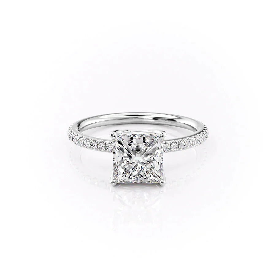 The Pave Alison Set With A 1.0 Carat Princess 14K White Gold Lab Diamond