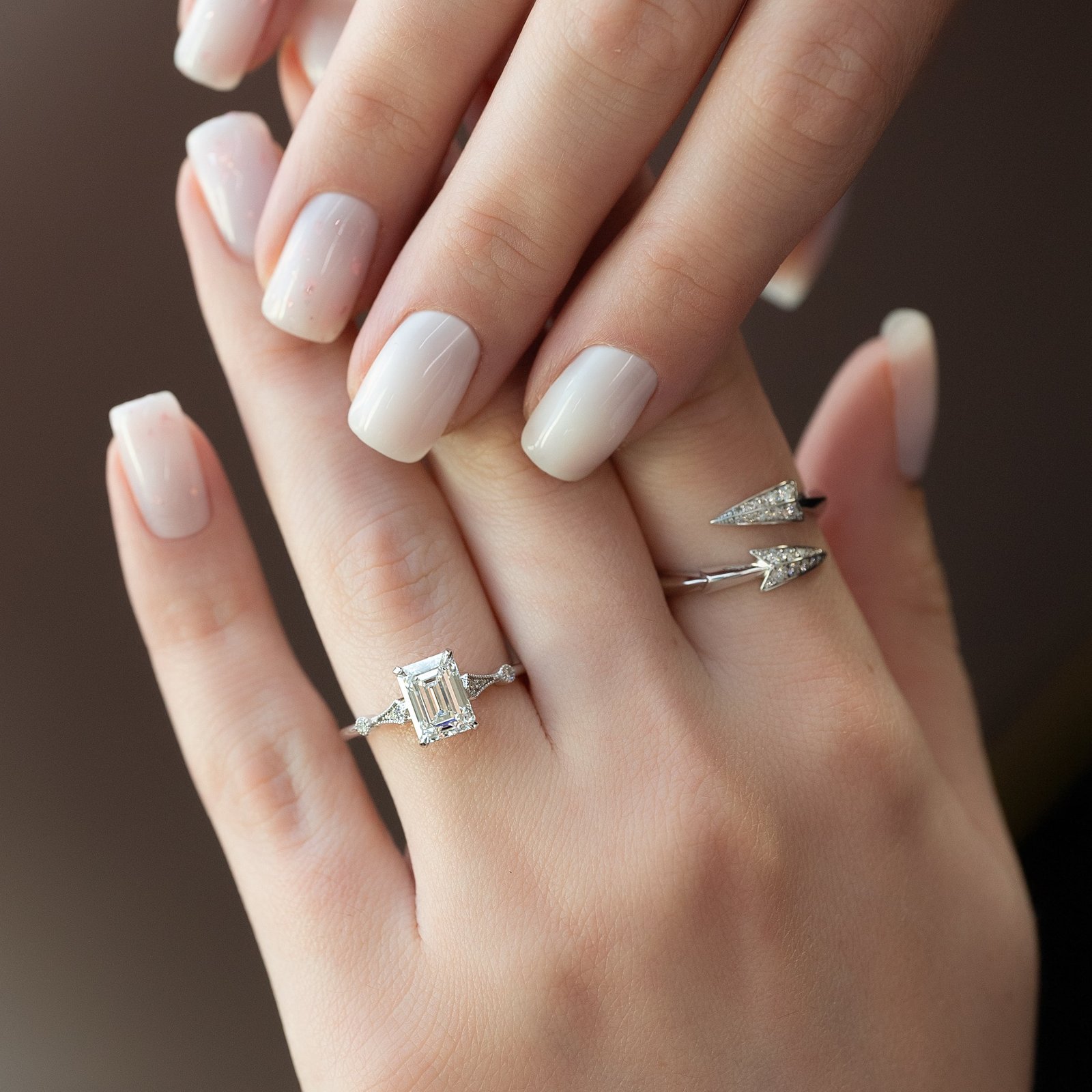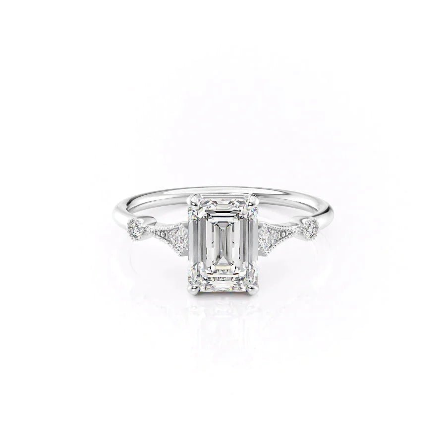 The Amber Set With A 1.0 Carat Emerald 14K White Gold Lab Diamond