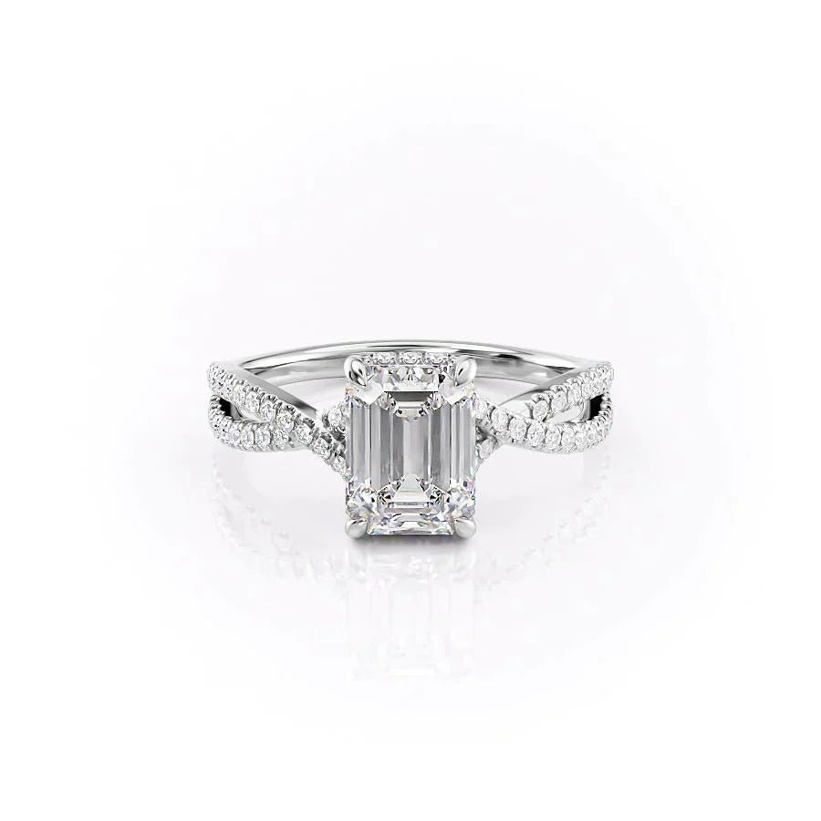 The Angelina Set With A 1.0 Carat Emerald 14K White Gold Lab Diamond