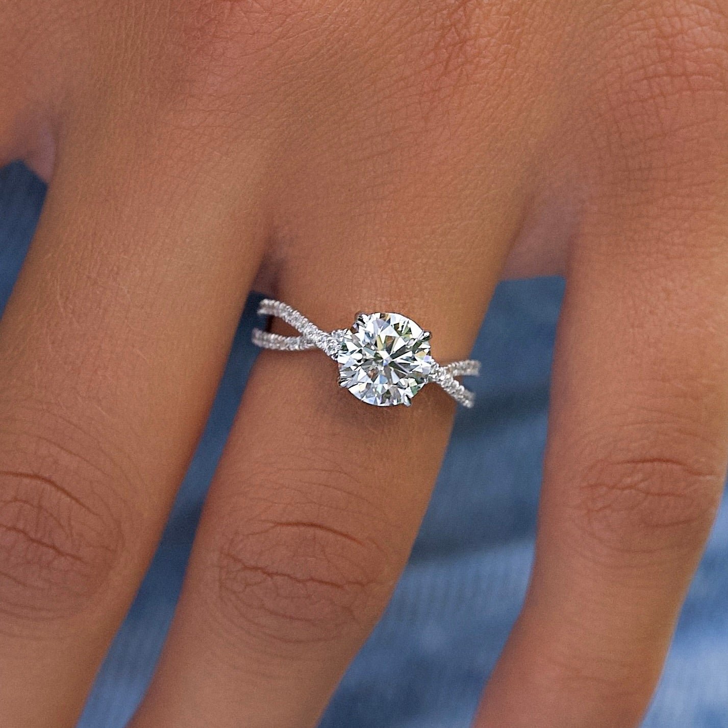 The Angelina Set With A 1.0 Carat Round 14K White Gold Moissanite