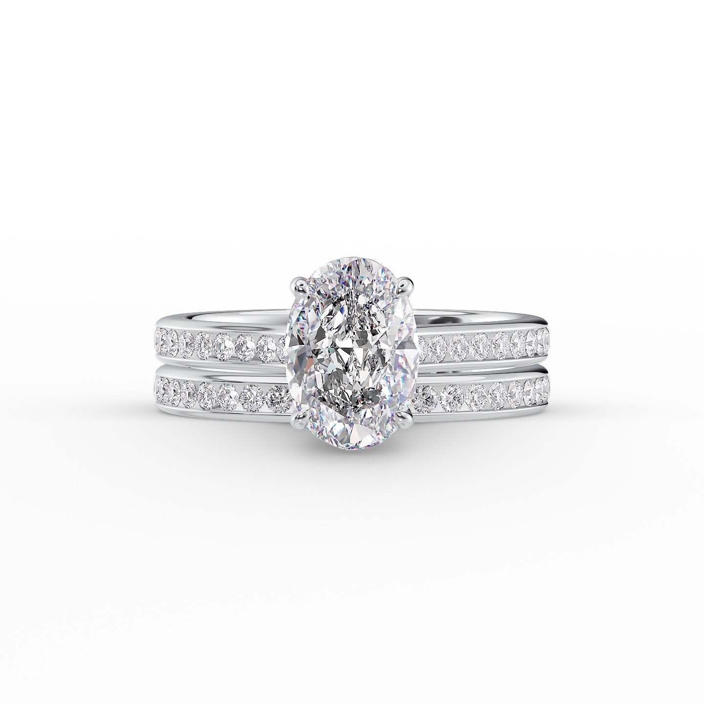 The Cameron Set With A 1.0 Carat Oval 14K White Gold Lab Diamond