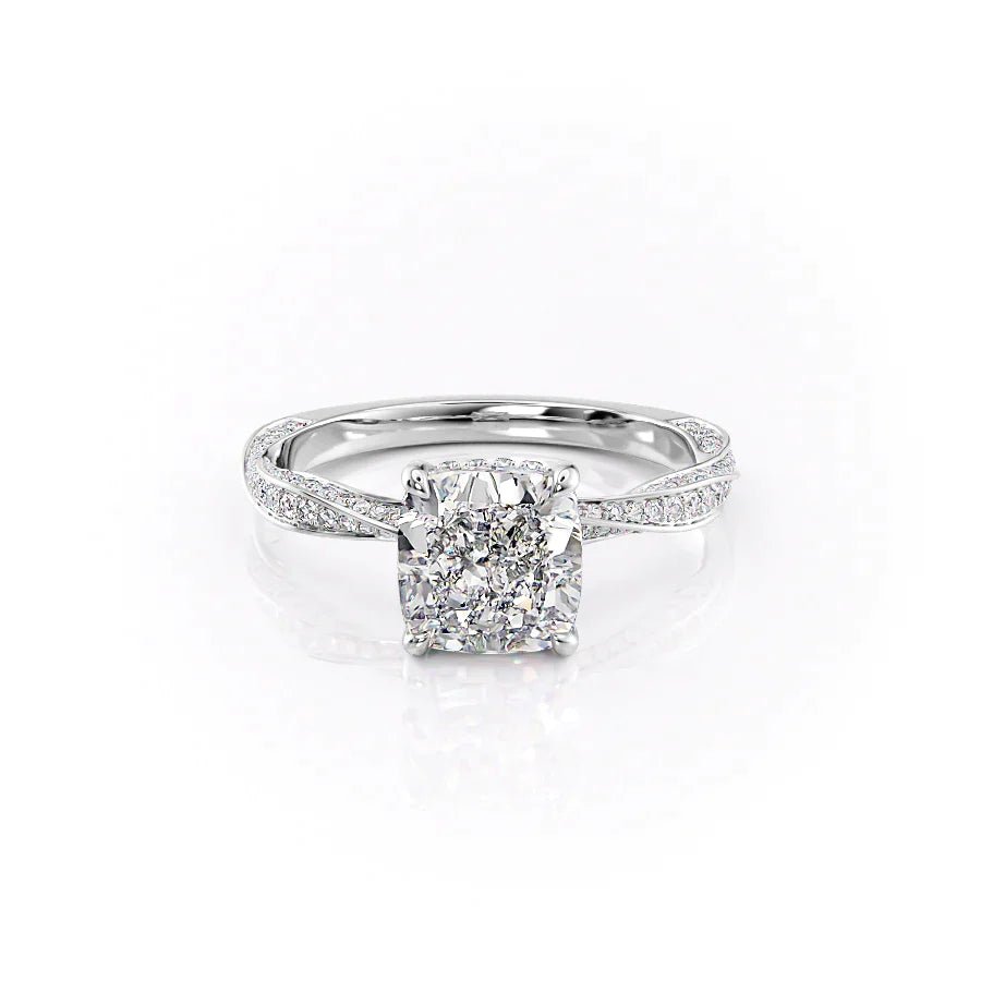 The Caroline Set With A 1.0 Carat Cushion 14K White Gold Lab Diamond