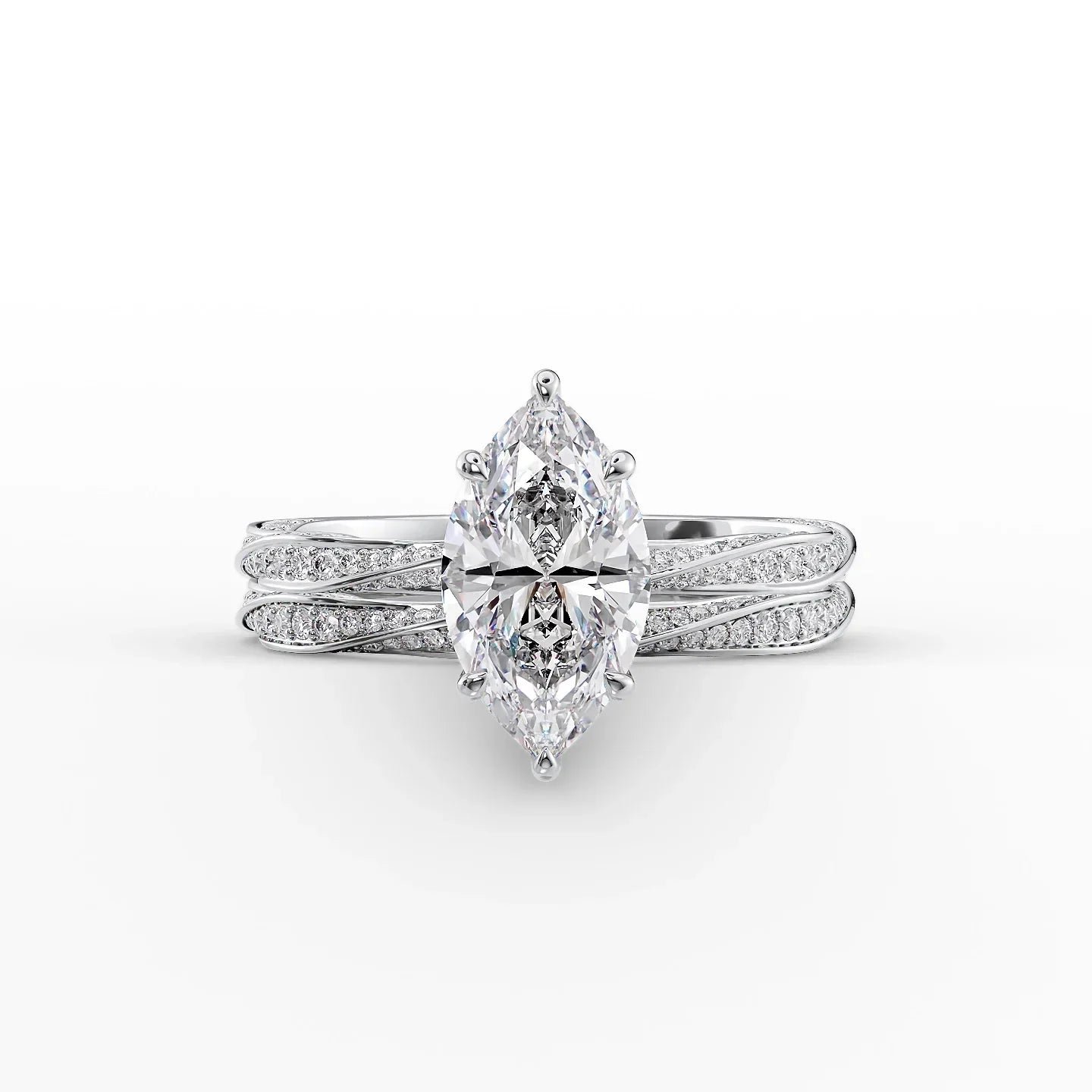 The Caroline Set With A 1.0 Carat Marquise 14K White Gold Lab Diamond