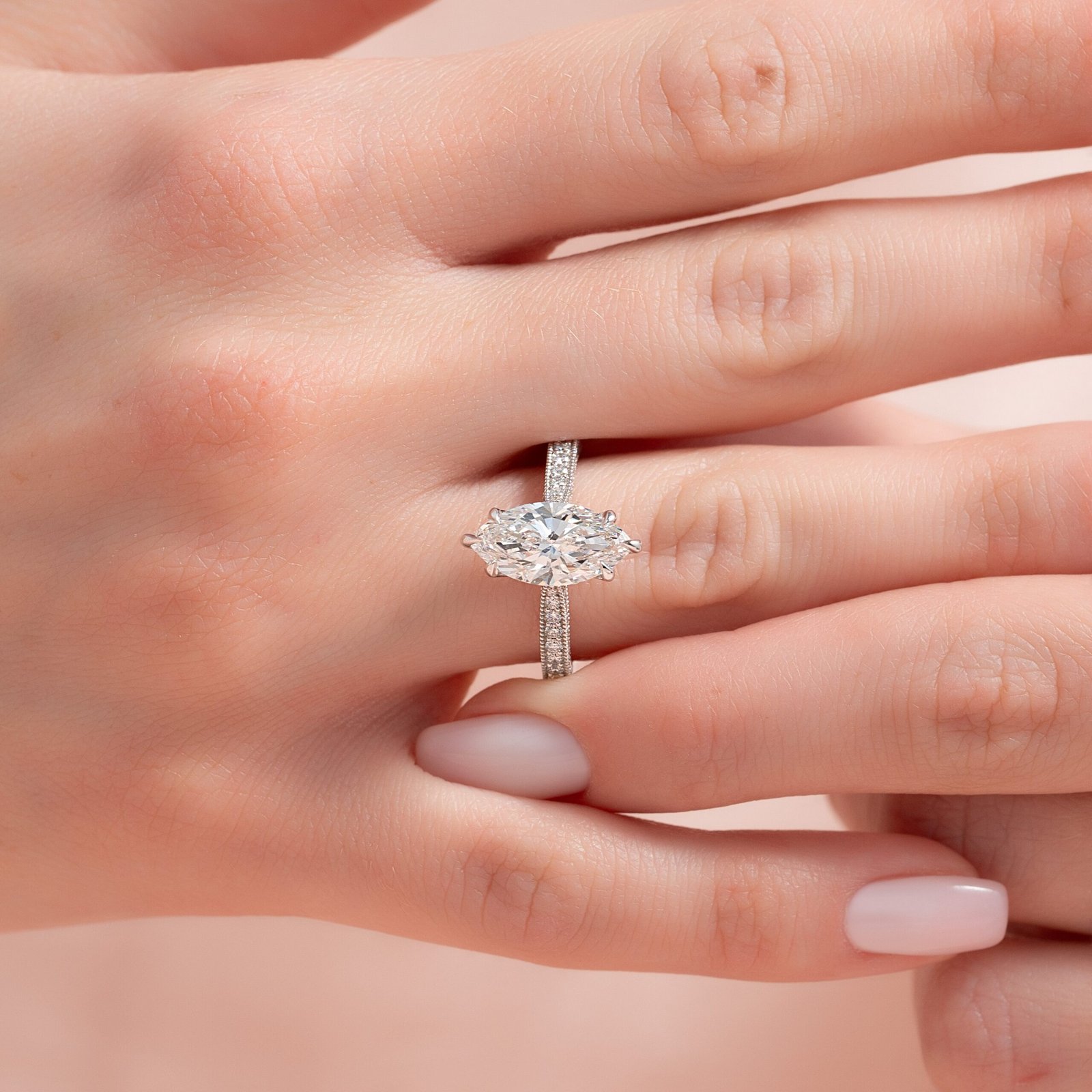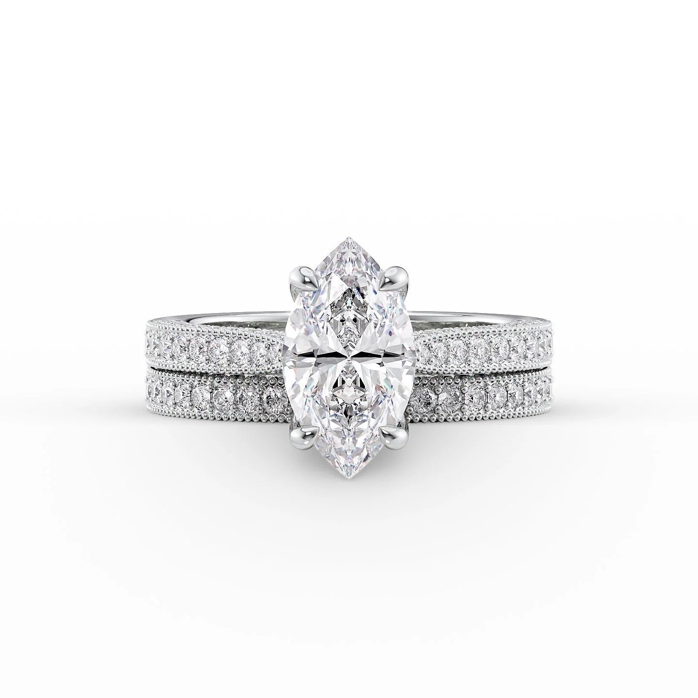 The Catherine Set With A 1.0 Carat Marquise 14K White Gold Lab Diamond