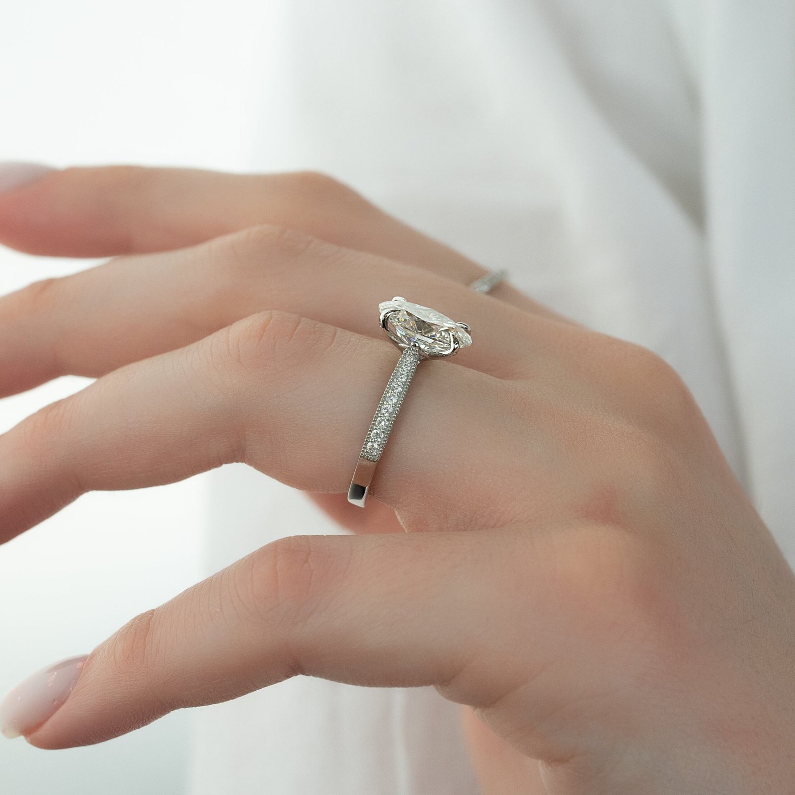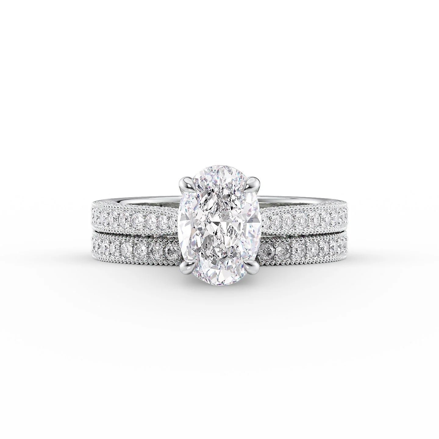 The Catherine Set With A 1.0 Carat Oval 14K White Gold Lab Diamond