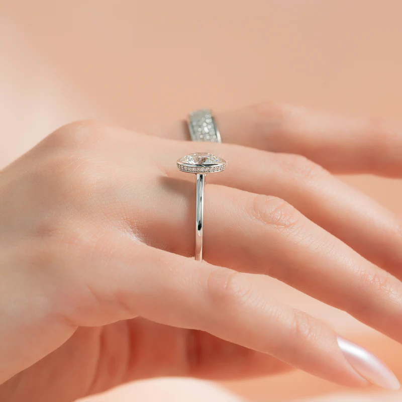 The Charlotte Set With A 1.0 Carat Marquise 14K White Gold Lab Diamond