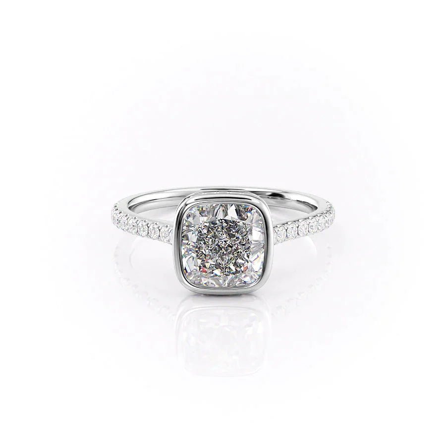 The Pave Charlotte Set With A 1.0 Carat Cushion 14K White Gold Lab Diamond