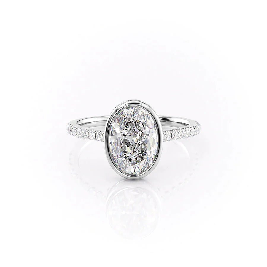The Pave Charlotte Set With A 1.0 Carat Oval 14K White Gold Lab Diamond