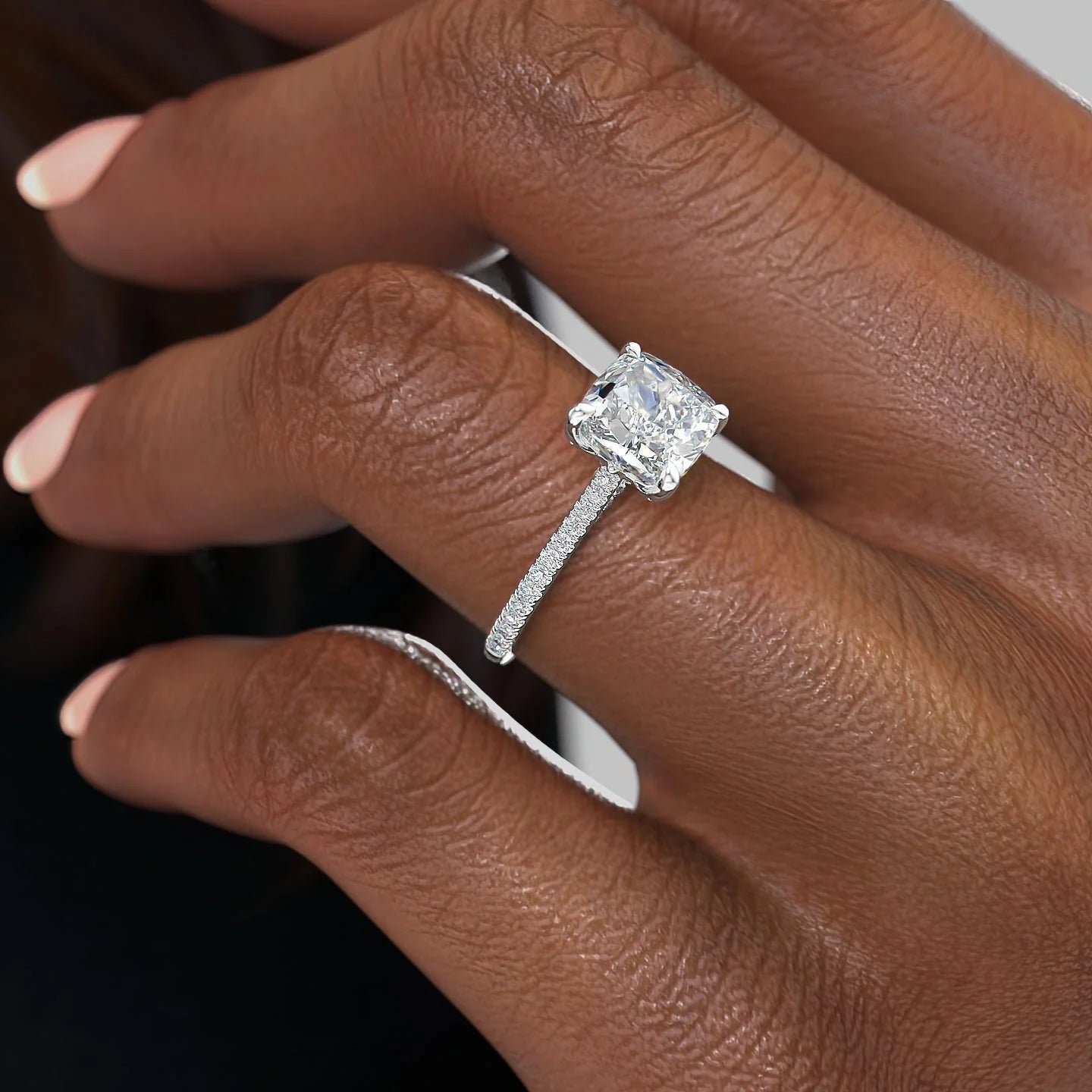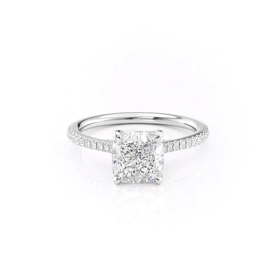 The Pave Claire Set With A 1.0 Carat Cushion 14K White Gold Lab Diamond