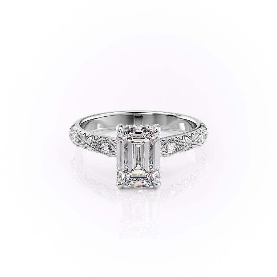 The Claudia Set With A 1.0 Carat Emerald 14K White Gold Lab Diamond