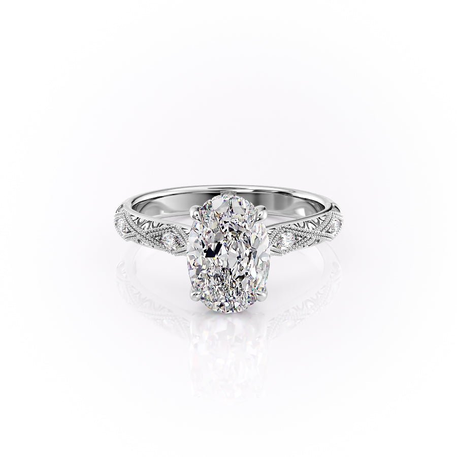 The Claudia Set With A 1.0 Carat Oval 14K White Gold Lab Diamond