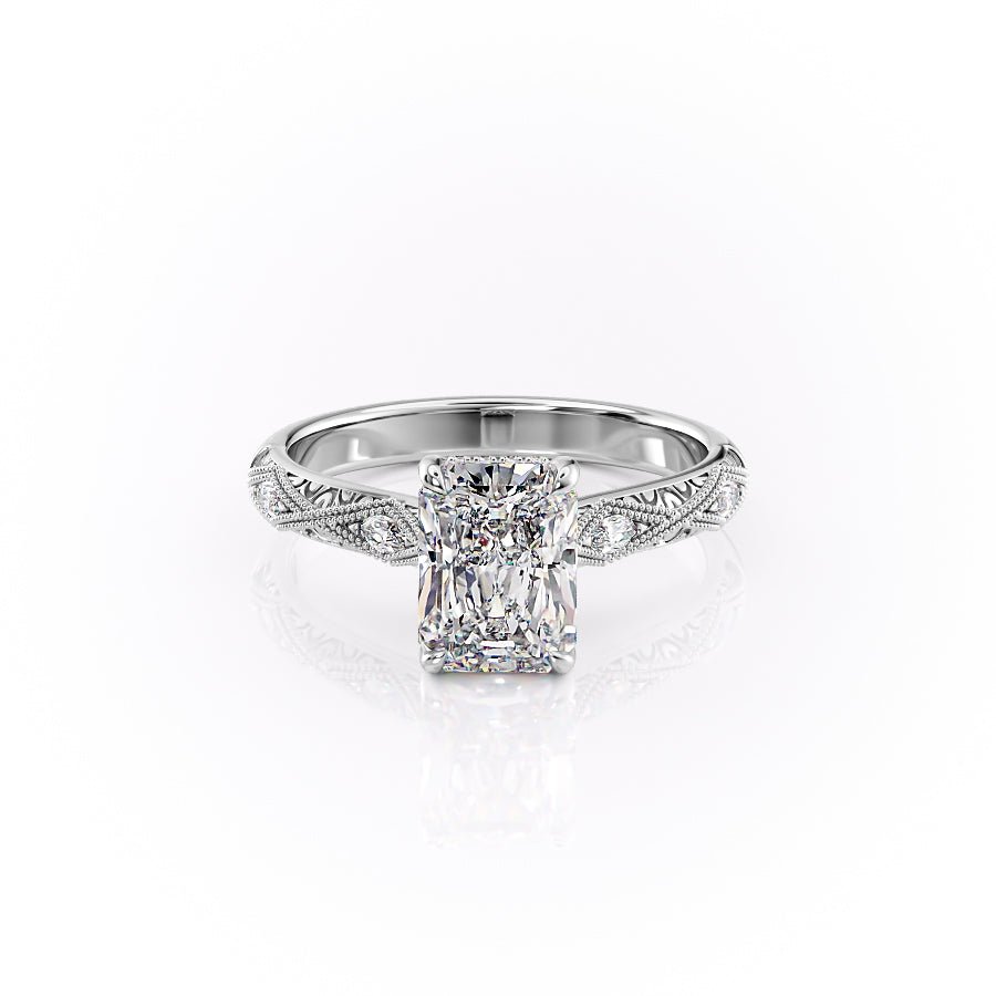 The Claudia Set With A 1.0 Carat Radiant 14K White Gold Lab Diamond