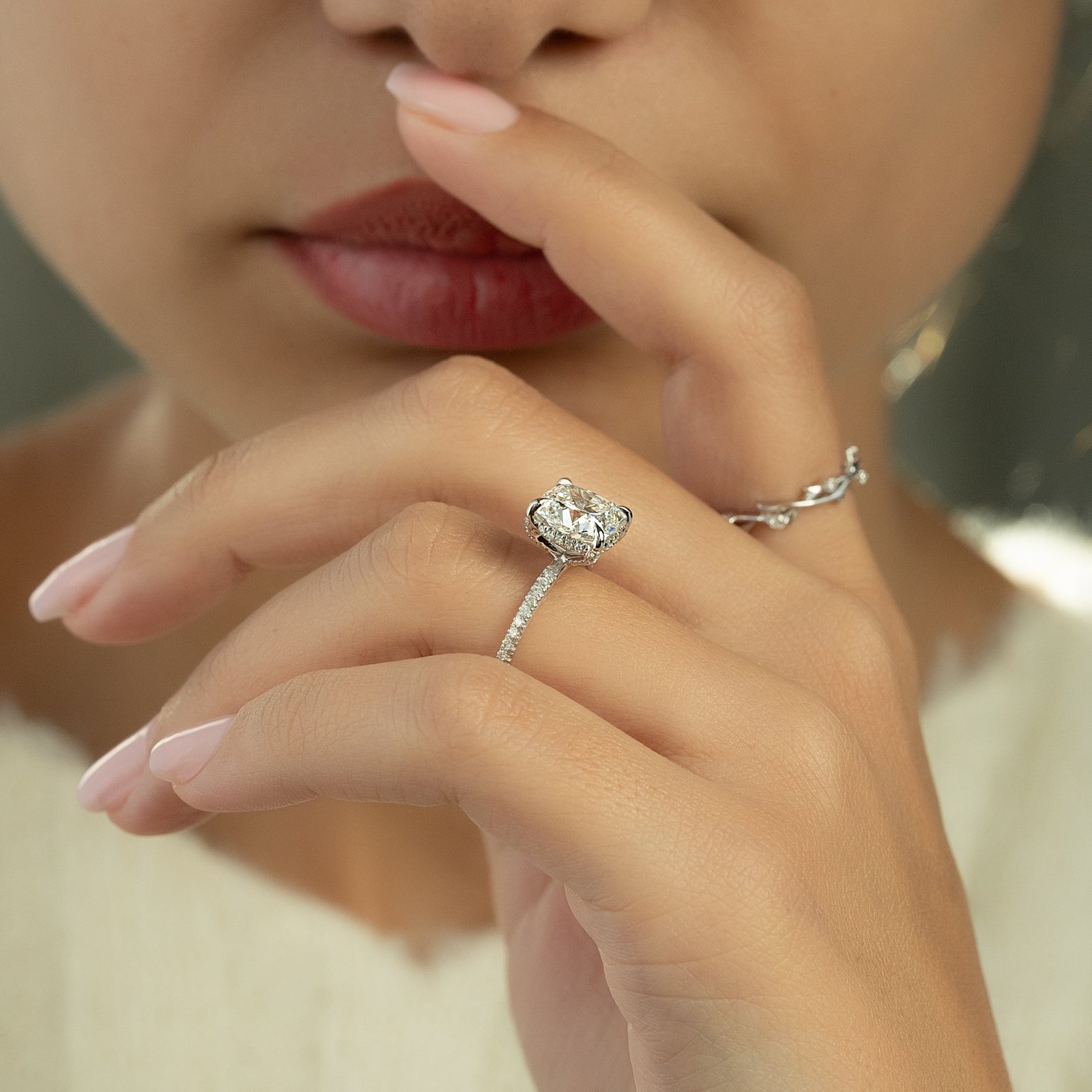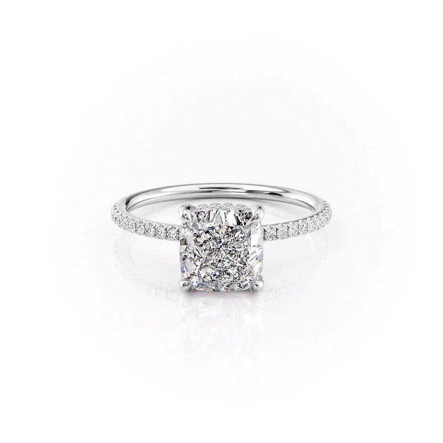 The Pave Crown Kamellie Set With A 1.0 Carat Cushion 14K White Gold Lab Diamond