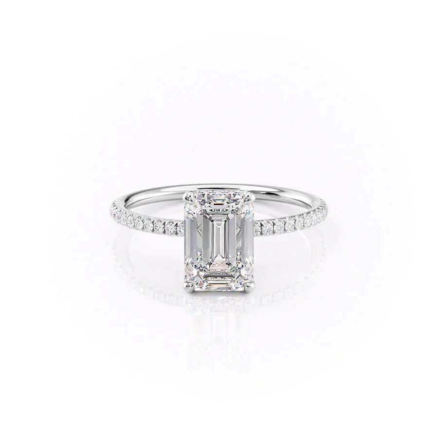 The Pave Crown Kamellie Set With A 1.0 Carat Emerald 14K White Gold Lab Diamond