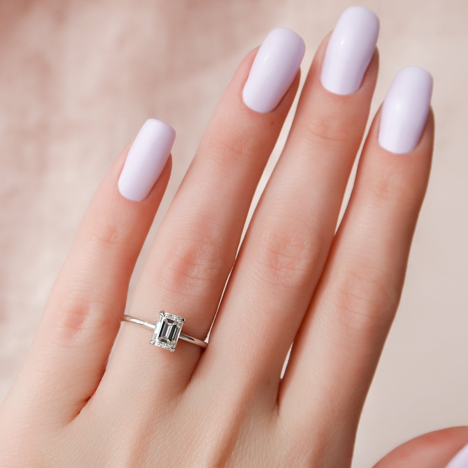 The Crown Kamellie Set With A 1.0 Carat Emerald 14K White Gold Lab Diamond