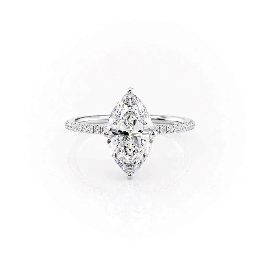 The Pave Crown Kamellie Set With A 1.0 Carat Marquise 14K White Gold Lab Diamond