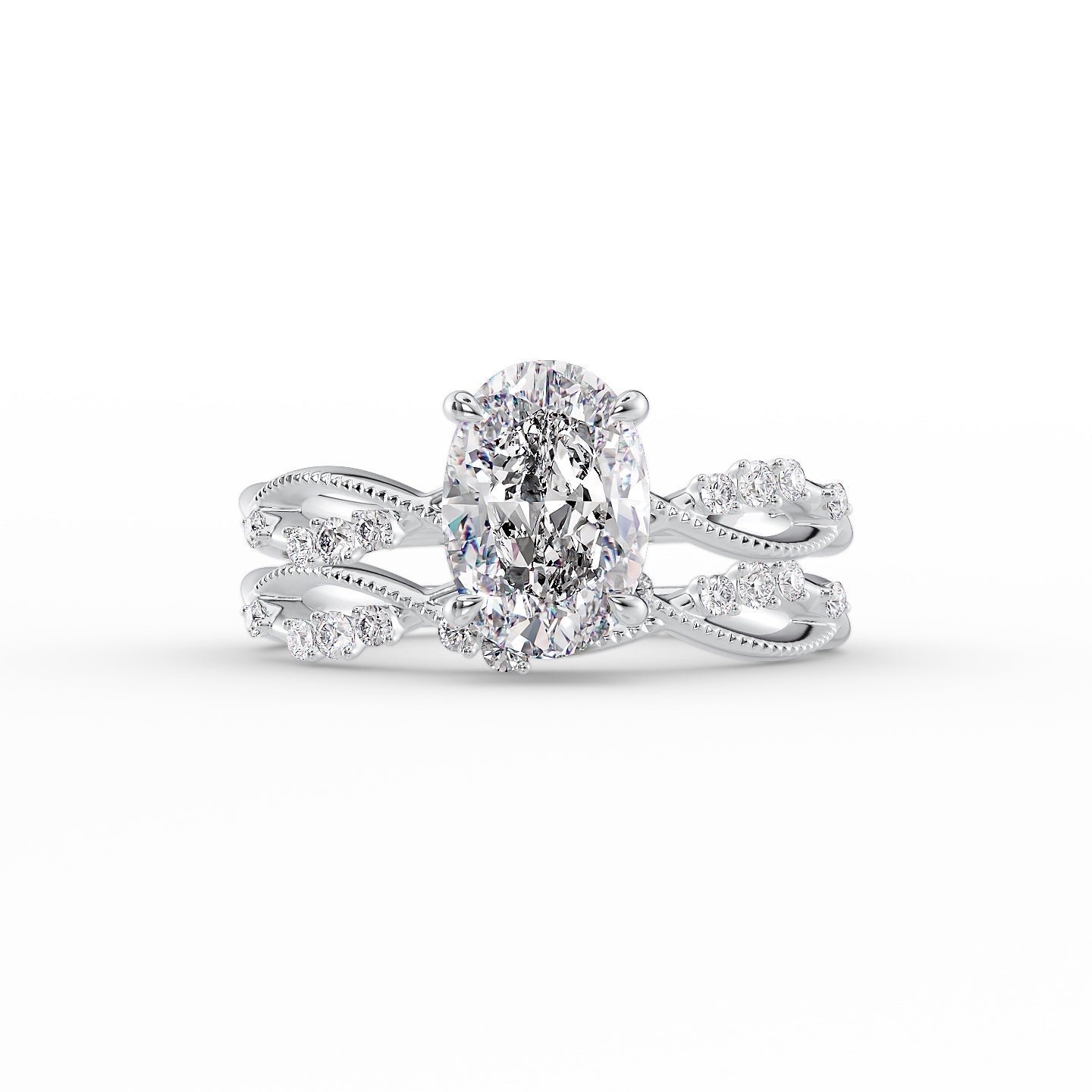 The Daisy Set With A 1.0 Carat Oval 14K White Gold Lab Diamond