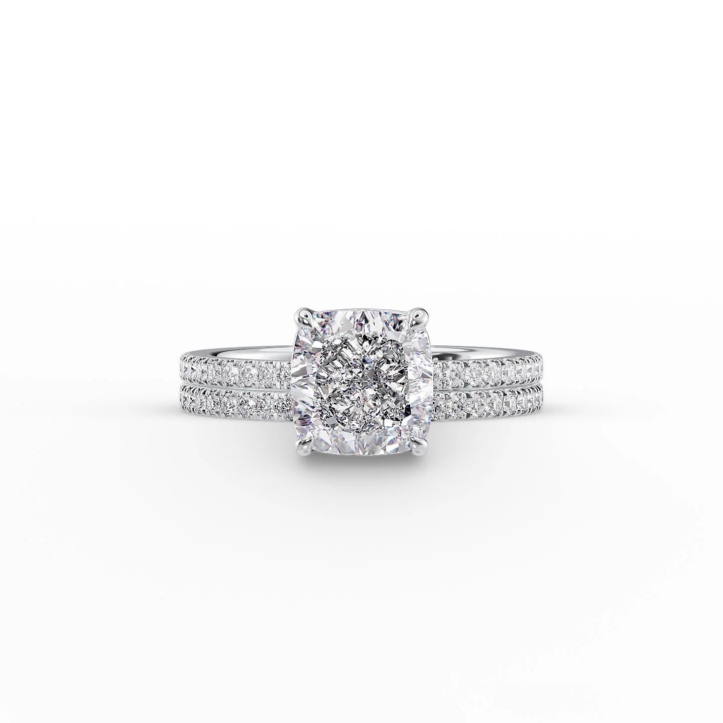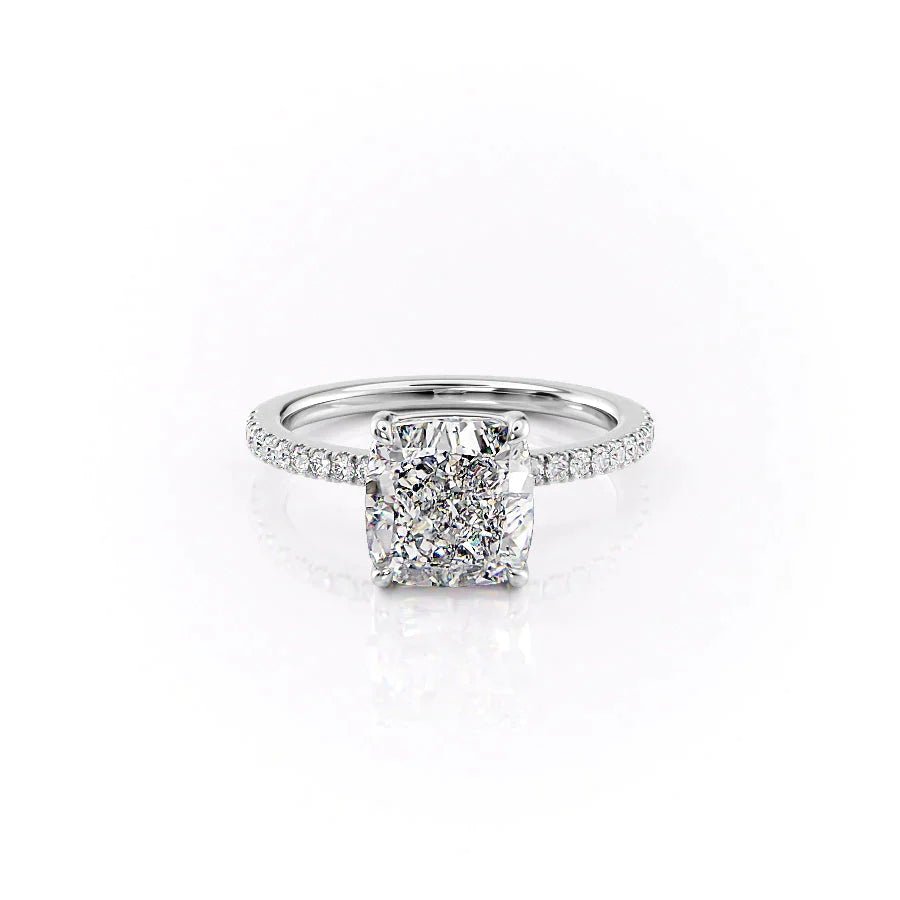 The Pave Eleanor Set With A 1.0 Carat Cushion 14K White Gold Lab Diamond