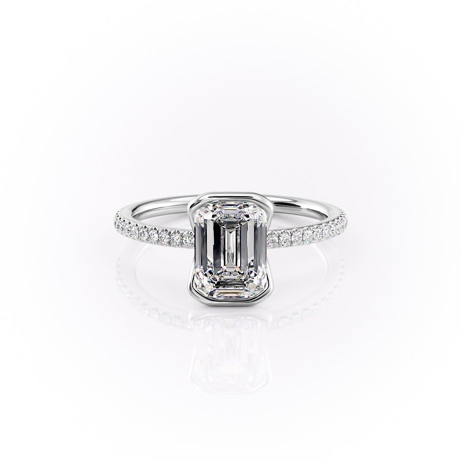 The Pave Eliza Set With A 1.0 Carat Emerald 14K White Gold Lab Diamond