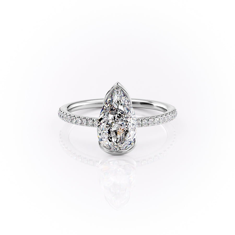 The Pave Eliza Set With A 1.0 Carat Pear 14K White Gold Lab Diamond