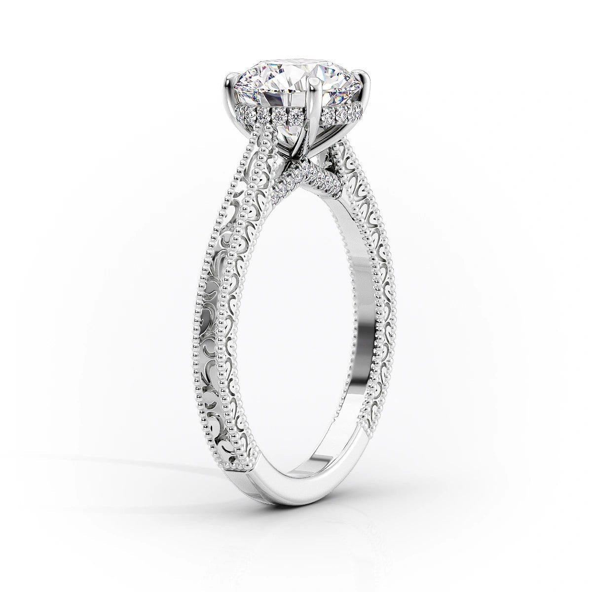 The Elizabeth Set With A 1.0 Carat Round 14K White Gold Moissanite