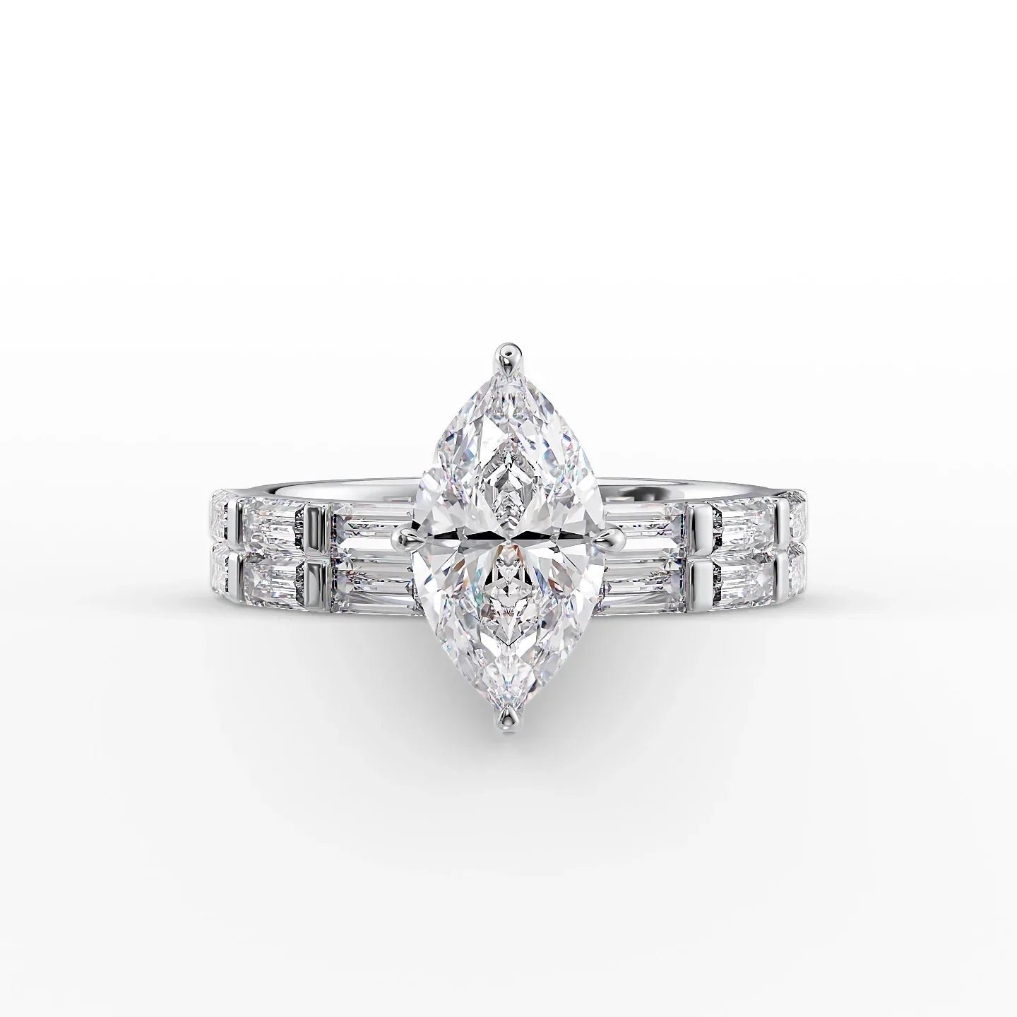 The Hailey Set With A 1.0 Carat Marquise 14K White Gold Lab Diamond