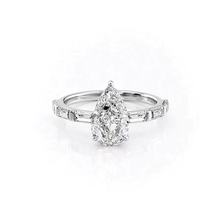 The Hailey Set With A 1.0 Carat Pear 14K White Gold Lab Diamond