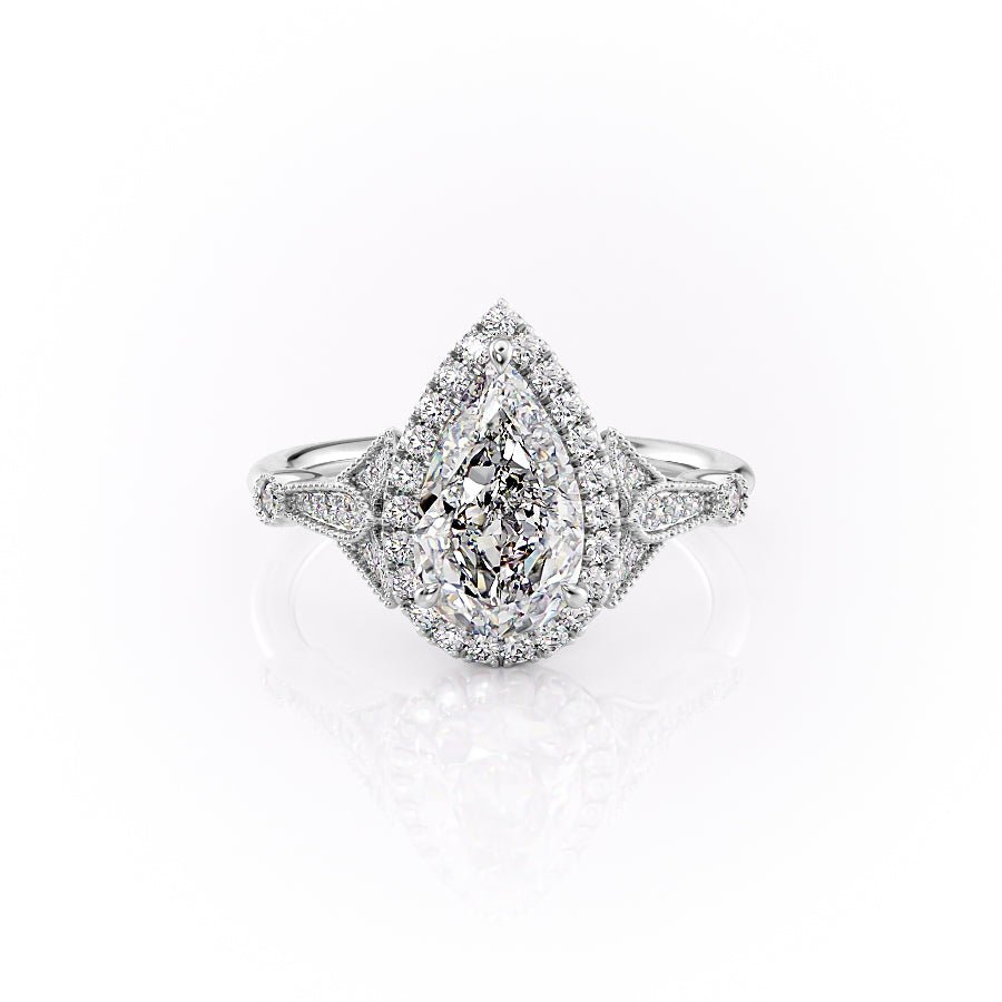 The Halo Stephanie Set With A 1.0 Carat Pear 14K White Gold Lab Diamond