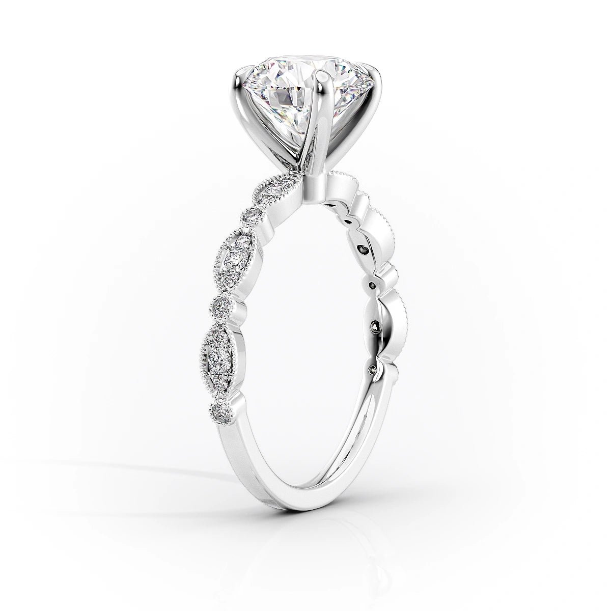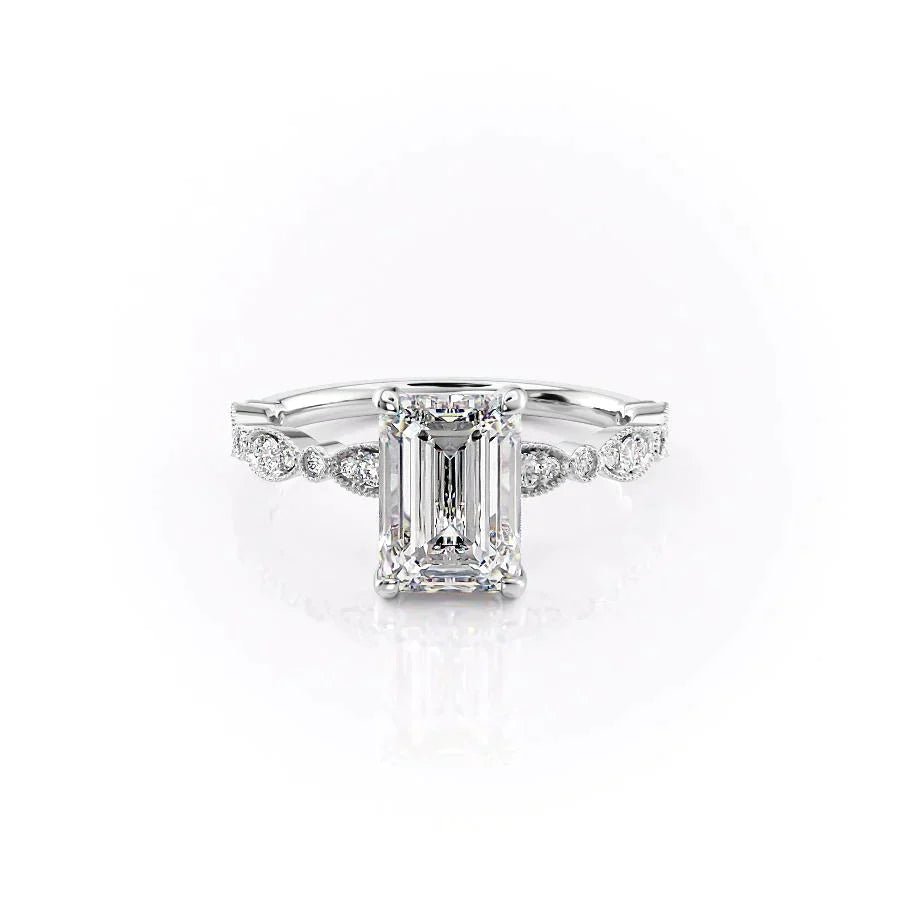 The Jasmine Set With A 1.0 Carat Emerald 14K White Gold Lab Diamond