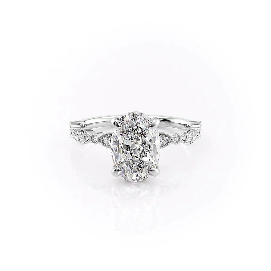 The Jasmine Set With A 1.0 Carat Oval 14K White Gold Lab Diamond