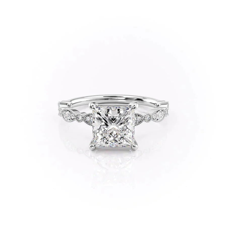 The Jasmine Set With A 1.0 Carat Princess 14K White Gold Lab Diamond