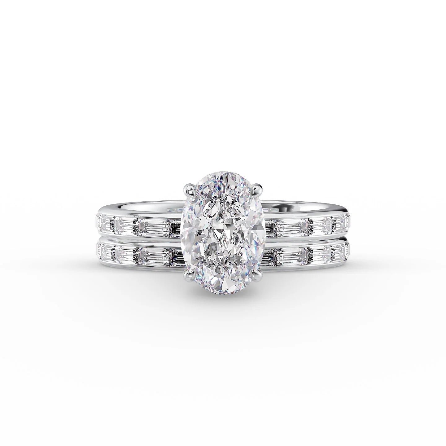 The Jennifer Set With A 1.0 Carat Oval 14K White Gold Lab Diamond