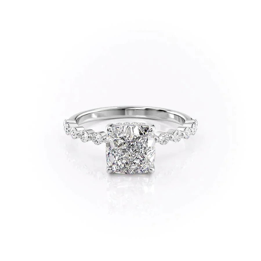 The Khloe Set With A 1.0 Carat Cushion 14K White Gold Lab Diamond