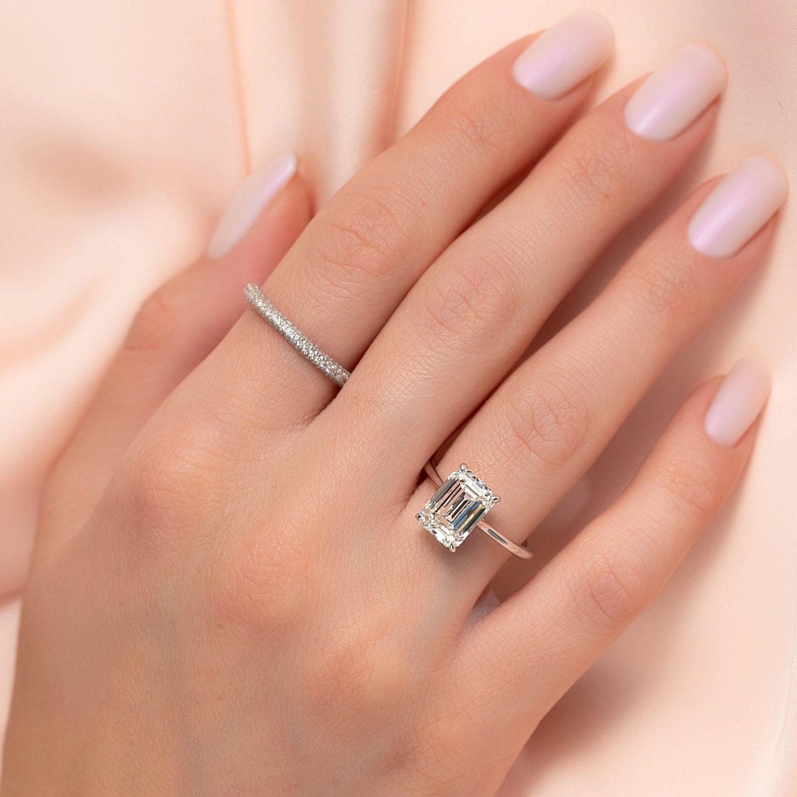 The Lexie Set With A 1.0 Carat Emerald 14K White Gold Lab Diamond