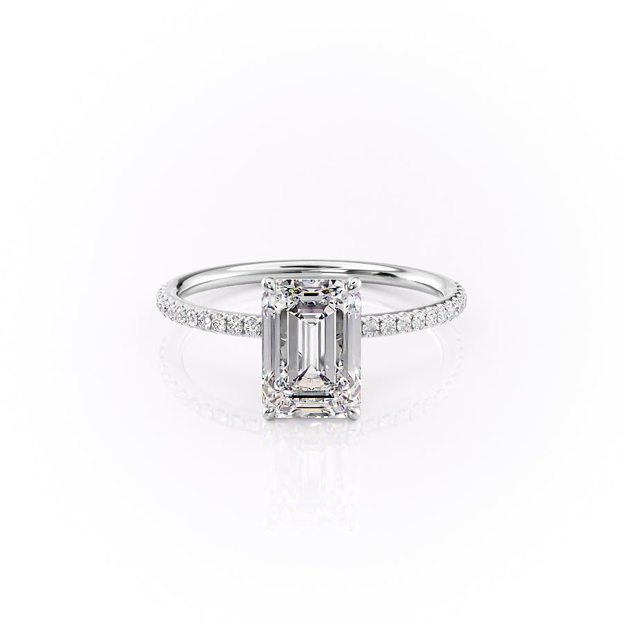 The Pave Lily Set With A 1.0 Carat Emerald 14K White Gold Lab Diamond