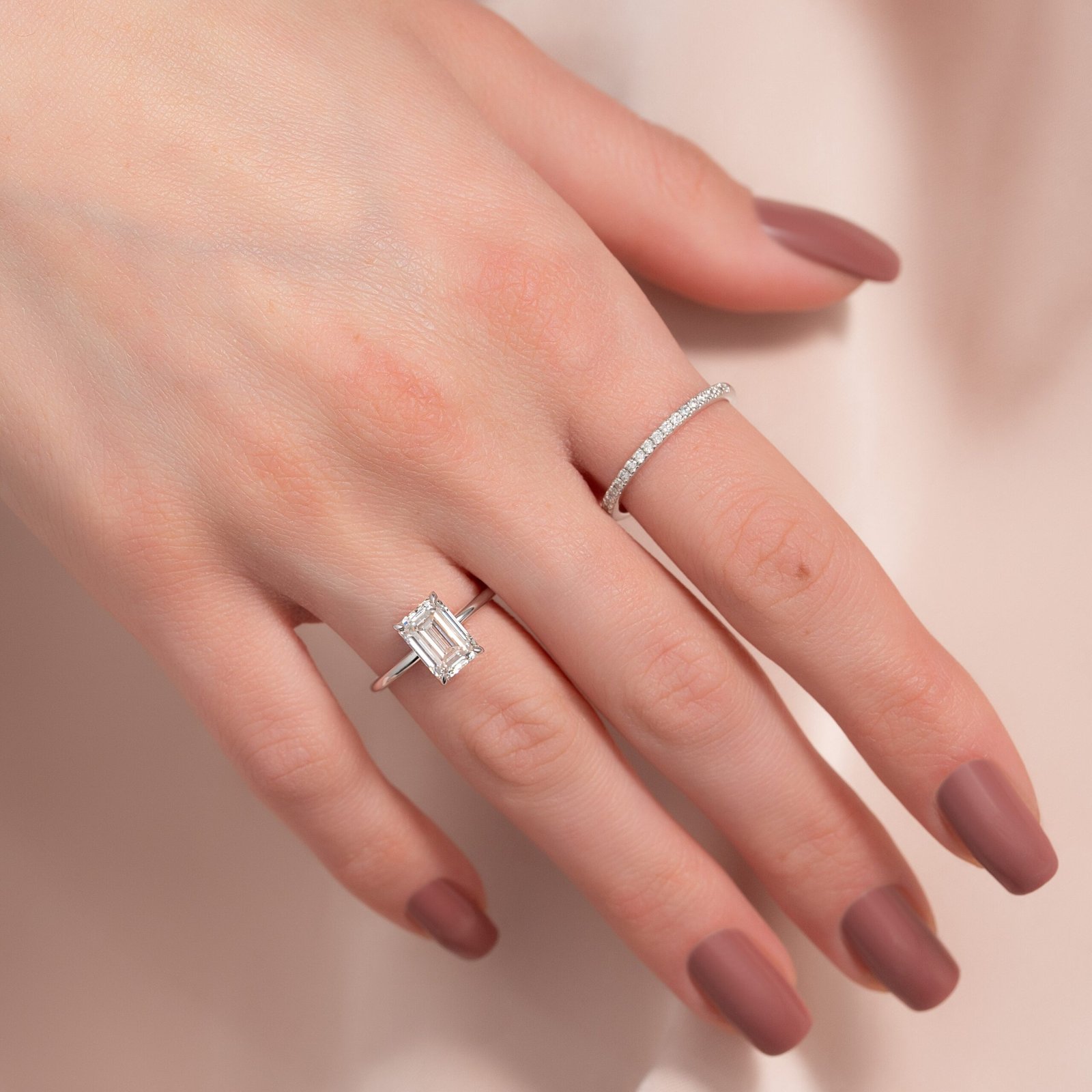 The Lily Set With A 1.0 Carat Emerald 14K White Gold Lab Diamond