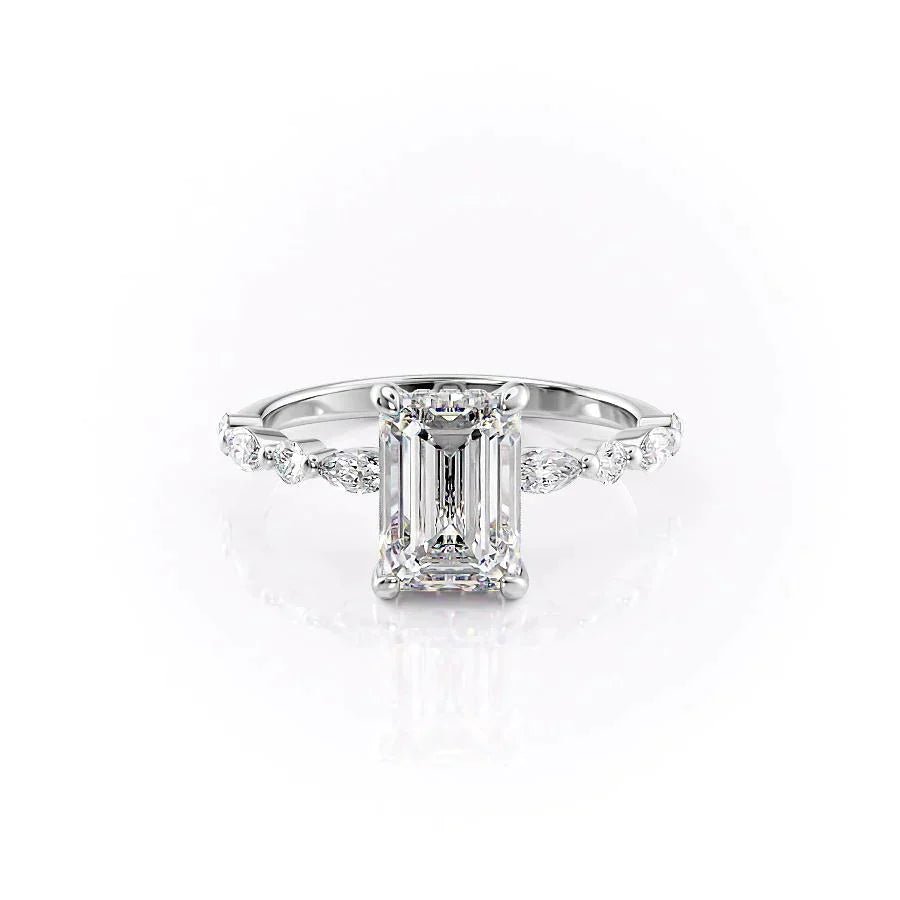 The Lindsey Set With A 1.0 Carat Emerald 14K White Gold Lab Diamond