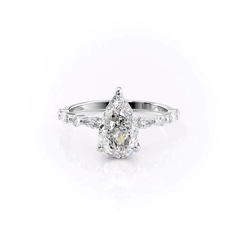 The Lindsey Set With A 1.0 Carat Pear 14K White Gold Lab Diamond
