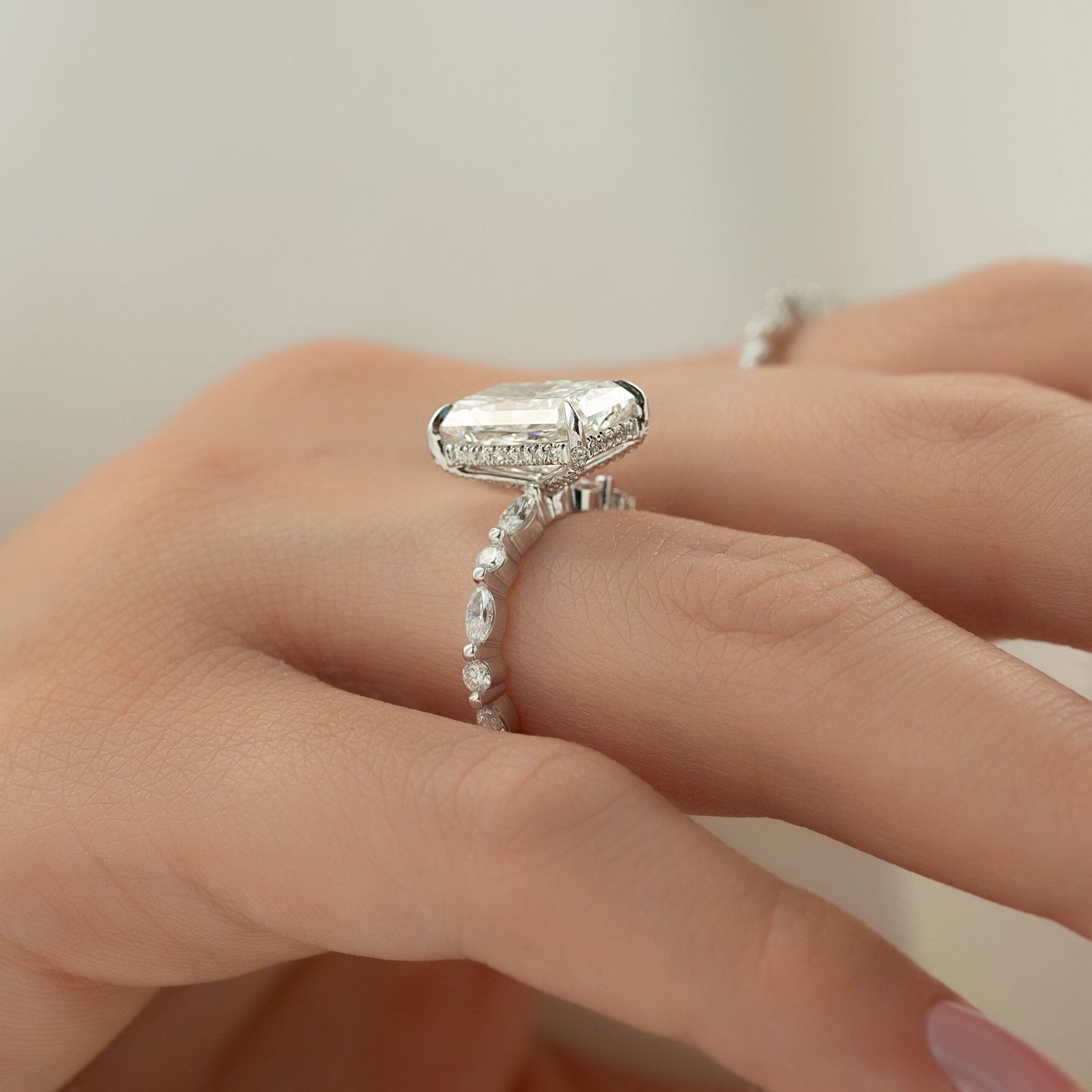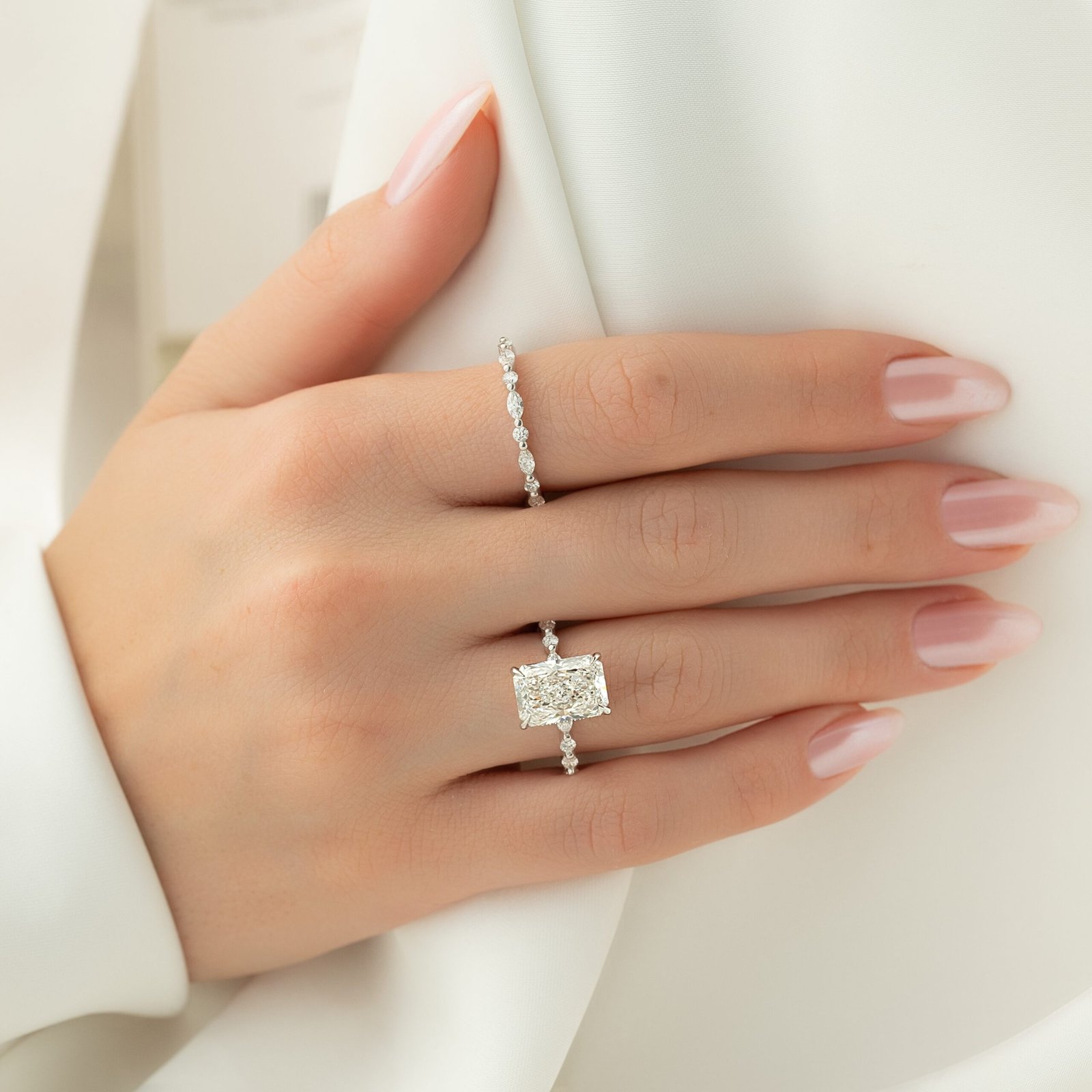 The Lindsey Set With A 1.0 Carat Radiant 14K White Gold Lab Diamond