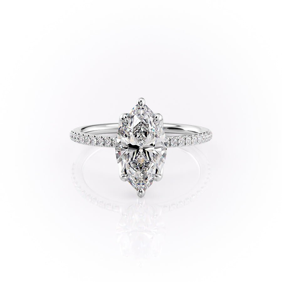 The Pave Lisa Set With A 1.0 Carat Marquise 14K White Gold Lab Diamond
