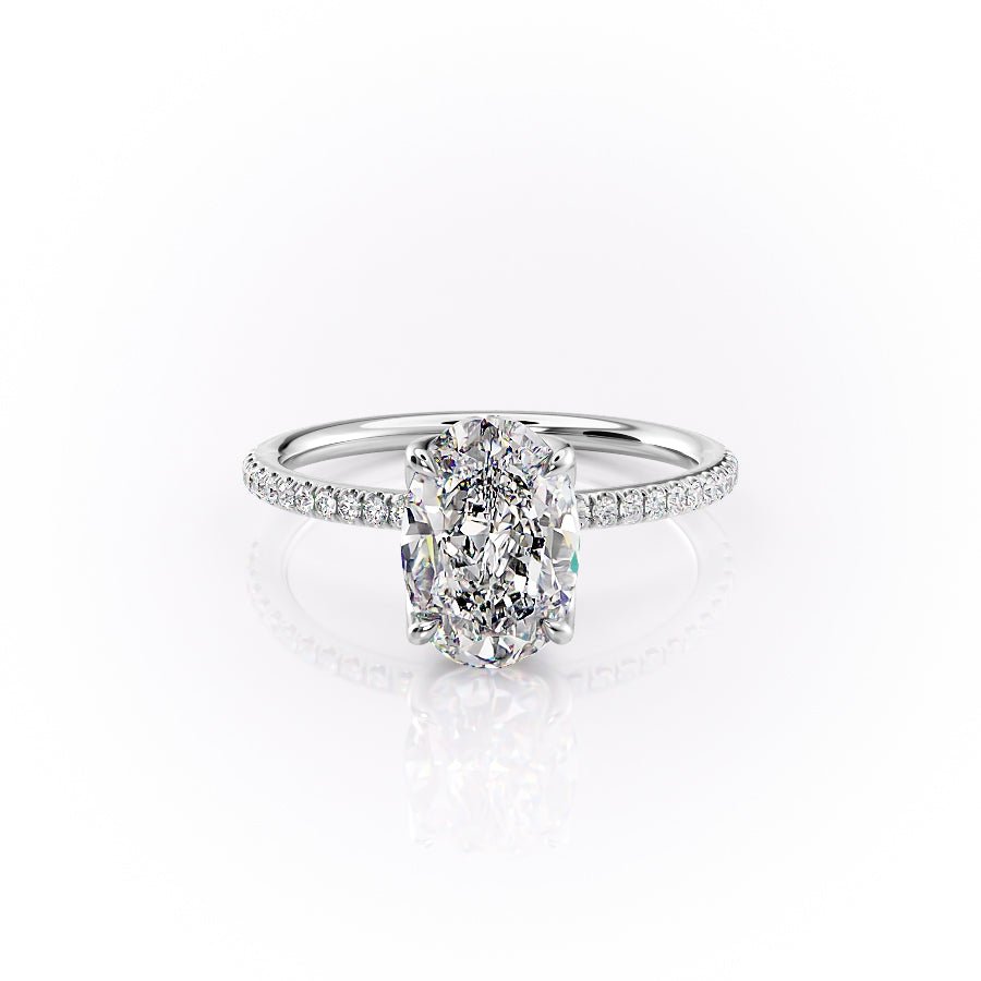 The Pave Lisa Set With A 1.0 Carat Oval 14K White Gold Lab Diamond