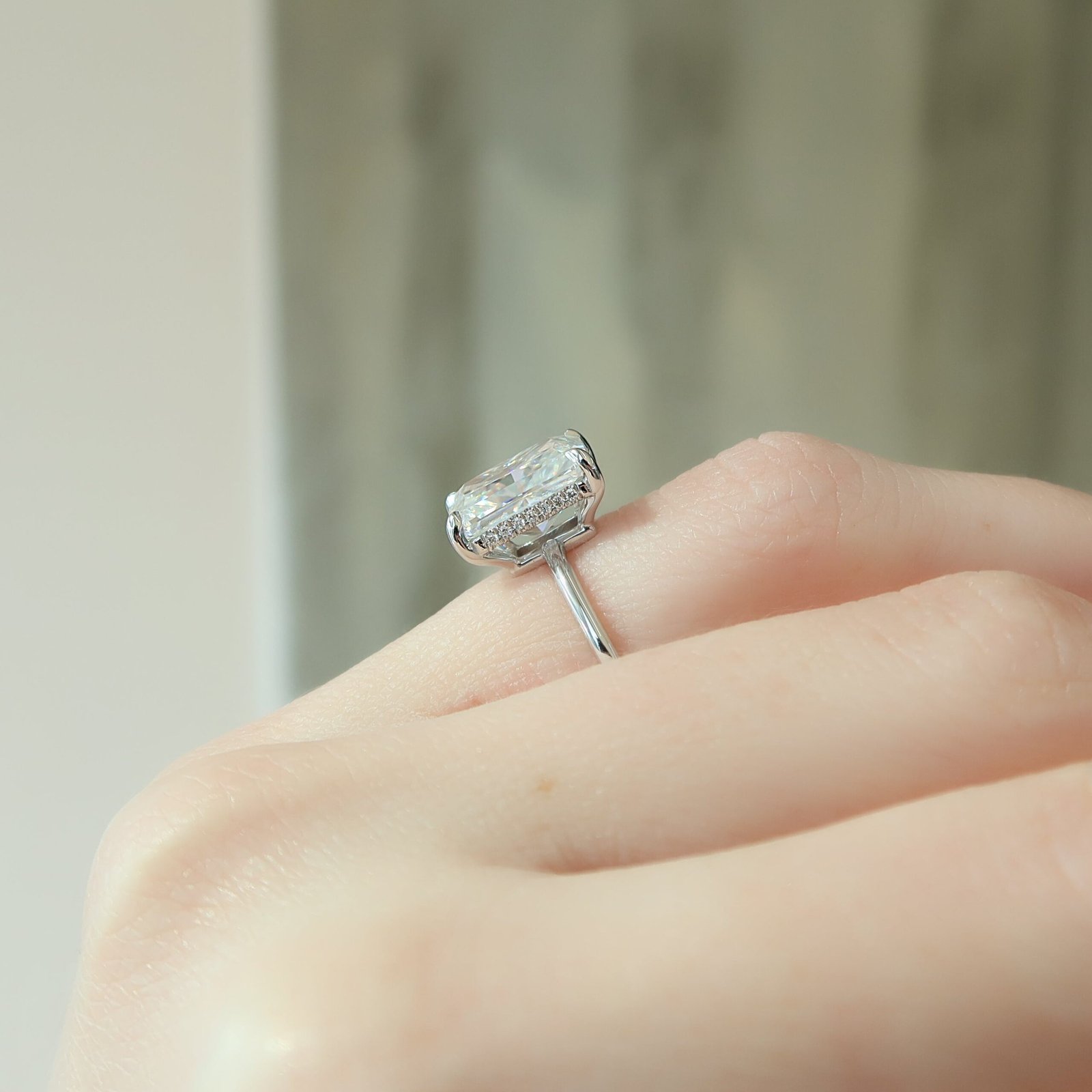 The Low Profile Kamellie Set With A 1.0 Carat Radiant 14K White Gold Lab Diamond